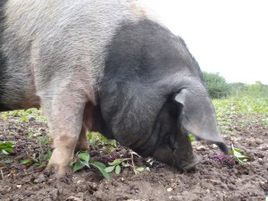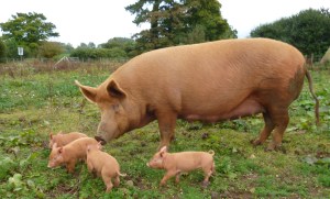 Our Ranger Pigs live very well; one sack of high protein, non GM, vegetarian pelleted food every day, topped up with a regular supply of fruit and vegetables; tomatoes, melons, sugarbeet and mangoes all go down a treat!